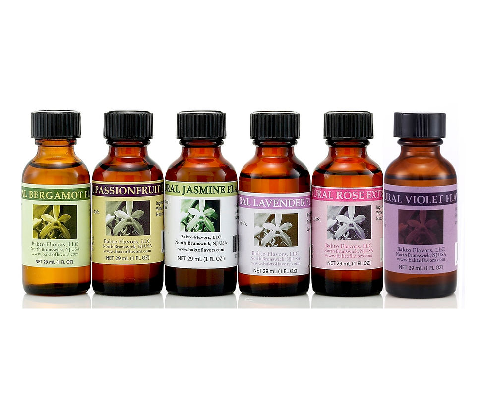 Almond - Anise - Apple - Banana - Bergamot - Blood Orange - Blueberry - Brandy - Brownie Batter - Butterscotch - Butter Pecan - Caramel - Caramel Apple - Cardamom - Carrot Cake - Cherry - Cherry Vanilla - Chocolate - Chocolate Banana -Chocolate Cherry - Chocolate Coconut - Chocolate Mint - Chocolate Raspberry - Chocolate Strawberry - Cinnamon - Cinnamon Pear - Coconut - Coffee - Coffee Cake - Cola - Cream Soda - Gin - Ginger - Hazelnut - Irish Cream - Jasmine - Key Lime - Lavender - Lemon - Lime - Mango - Maple - Orange - Passionfruit - Peach - Pear - Peppermint - Pineapple - Pistachio - Plum - Pomegranate - Pumpkin Pie - Raspberry - Root Beer - Rose - Rum - Smoke - Strawberry - Strawberry Shortcake - Tangerine - Vanilla - Violet - White Cake Batter - Yellow Cake